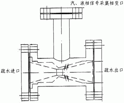 工作原理:自調節(jié)液位控制裝置,基于"汽液兩相流"原理,摒棄了傳統(tǒng)的浮球式,氣、電動式液位控制設備的缺點,自動調節(jié)容器出口液體的流量,從而達到更為穩(wěn)定的容器液位.其原理是:疏水由閥體入口進入閥腔,相變管(信號管)根據(jù)液位高低采集汽相信號或液相信號直接進入閥腔,與疏水混合后流經特定設計的喉部.當液位上升時,汽相信號減少,因而疏水流量增加;當液位下降時,汽相信號增加,減少喉部有效通流面積,疏水流量降低,達到有效阻礙疏水的目的.