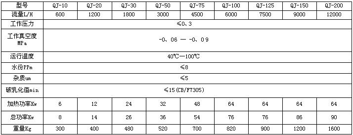 (一) 系列多功能真空濾油機的型號和技術(shù)參數(shù)表[見表]