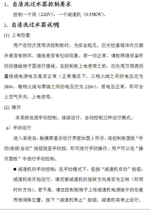 自清洗濾水器控制要求
