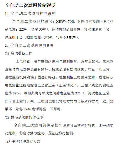 全自動(dòng)二次濾網(wǎng)的控制說明