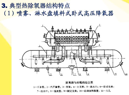 典型熱力除氧器結(jié)構(gòu)特點(diǎn):噴霧、淋水盤填料式臥式高壓無頭除氧器