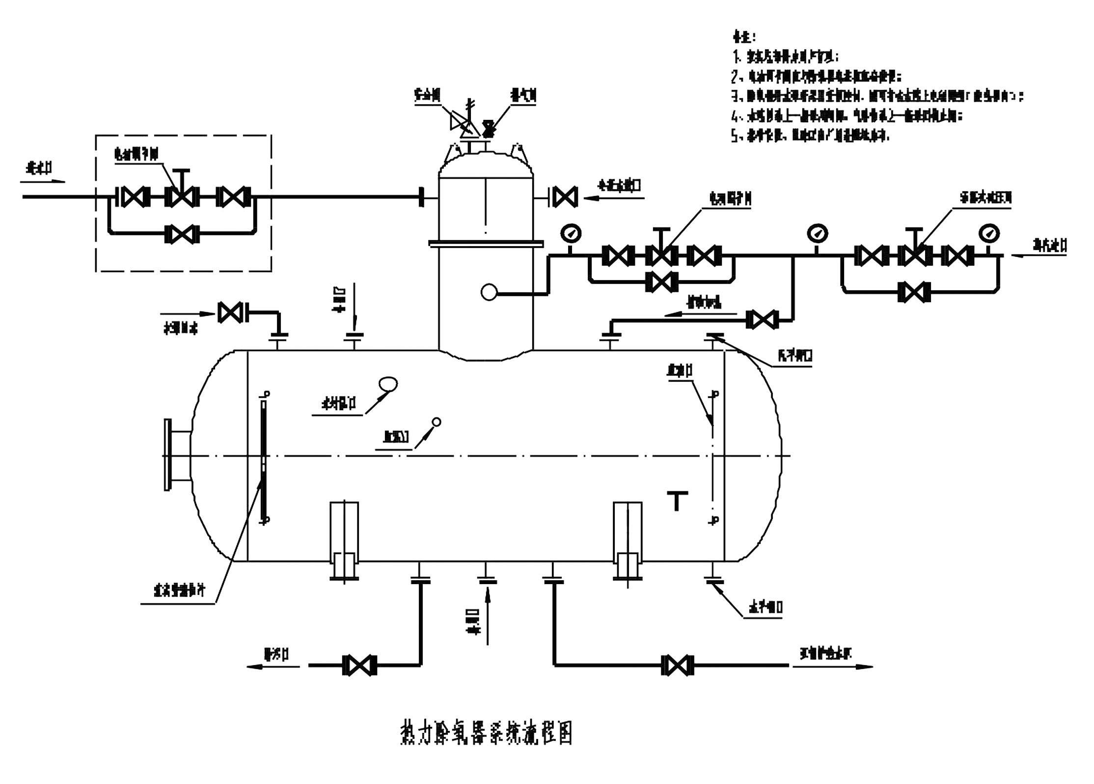熱力除氧器、水箱及附件的安裝,應(yīng)按熱力除氧器系統(tǒng)圍及本說(shuō)明書進(jìn)行。